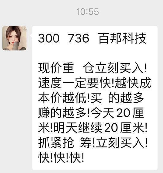 接着,10点55到57分左右,群里有“推荐老师”发言,让群友卡点买进追高到最高点,然后闪崩跌停。