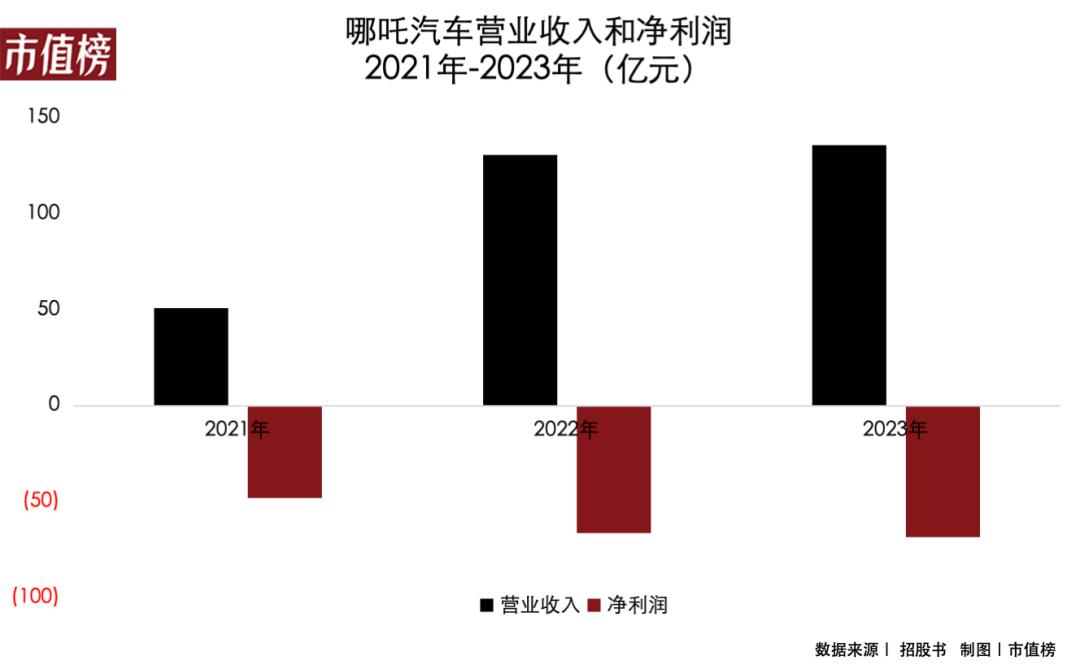 2023年,哪吒倒车,年销售额12.75万辆,同比下降16%,仅达到51%的交付目标,收入几乎没有增长。,与2022年相比,2023年收入135.5亿元,仅增长5亿元。
