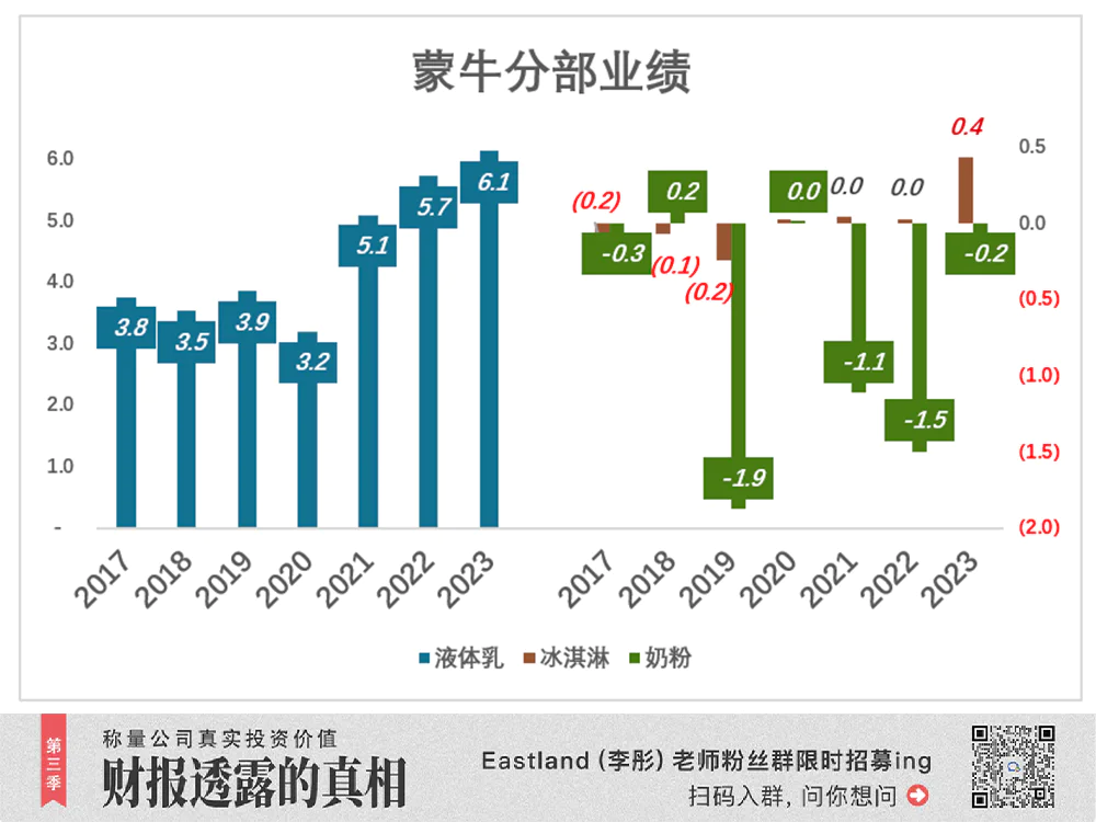 在过去的十年里,因为收入的几次下降,有七年的亏损,蒙牛奶粉业务完全失败。