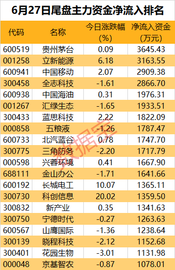 个股方面,贵州茅台,立新能源两股收盘净流入资金超过3000万元。下午,权重股再次上涨,贵州茅台翻红,开盘一度下跌近1.5%,收盘小幅上涨;中国挪动上涨超过2%,接近股价历史高点。