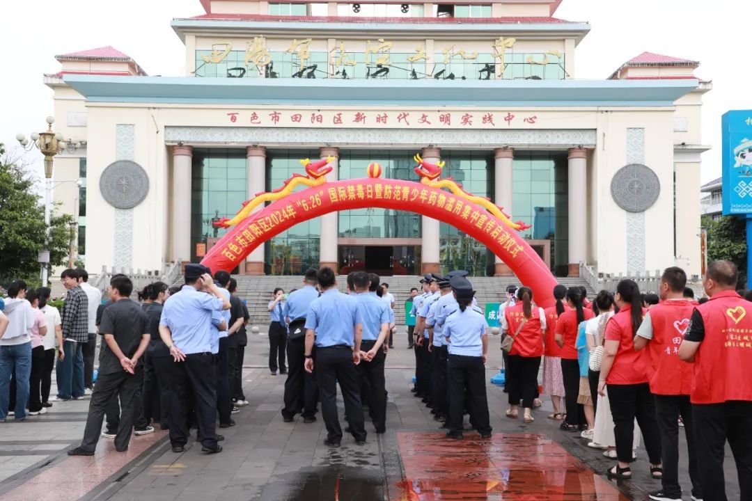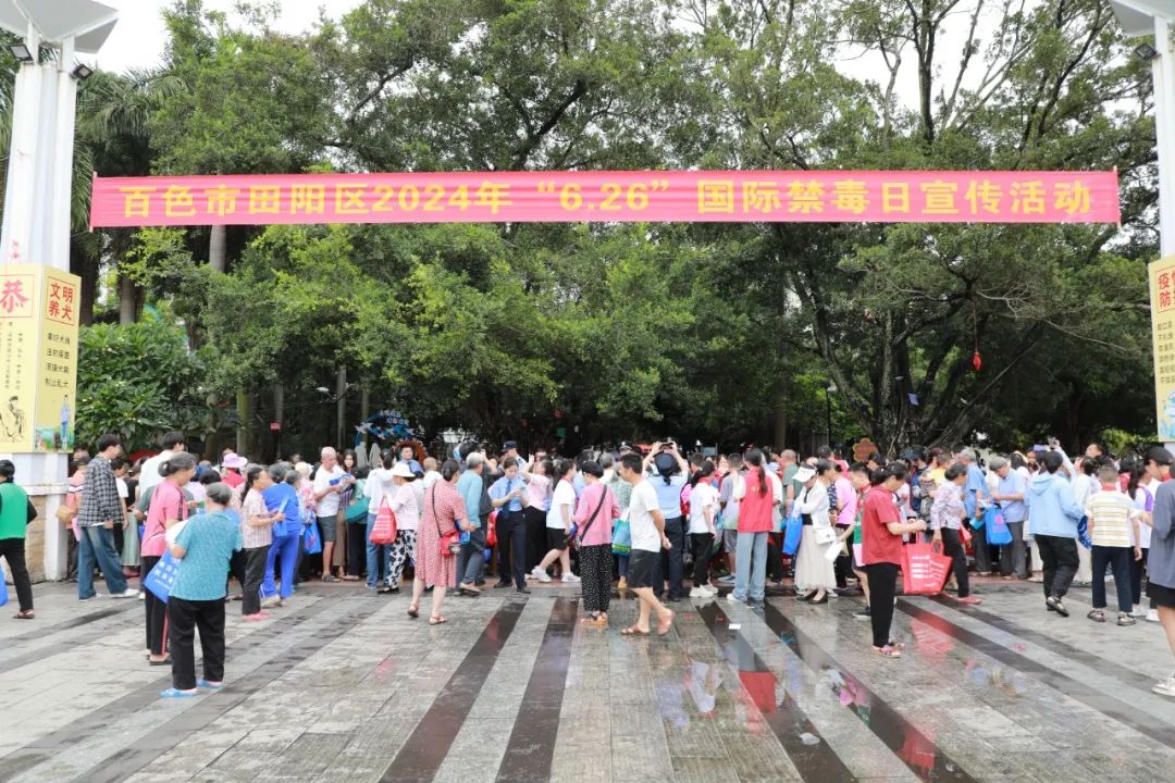 2024年6月26日是第37个国际禁毒日。6月26日,百色市田阳区人民法院组织干警前往布洛陀文化广场,参加2024年田阳区“6.26”国际禁毒日暨预防青少年药物滥用集中宣传活动,旨在进一步打击毒品犯罪活动的嚣张气焰,维护社会治安稳定和人民生活安宁,教育群众珍惜生命,远离毒品。