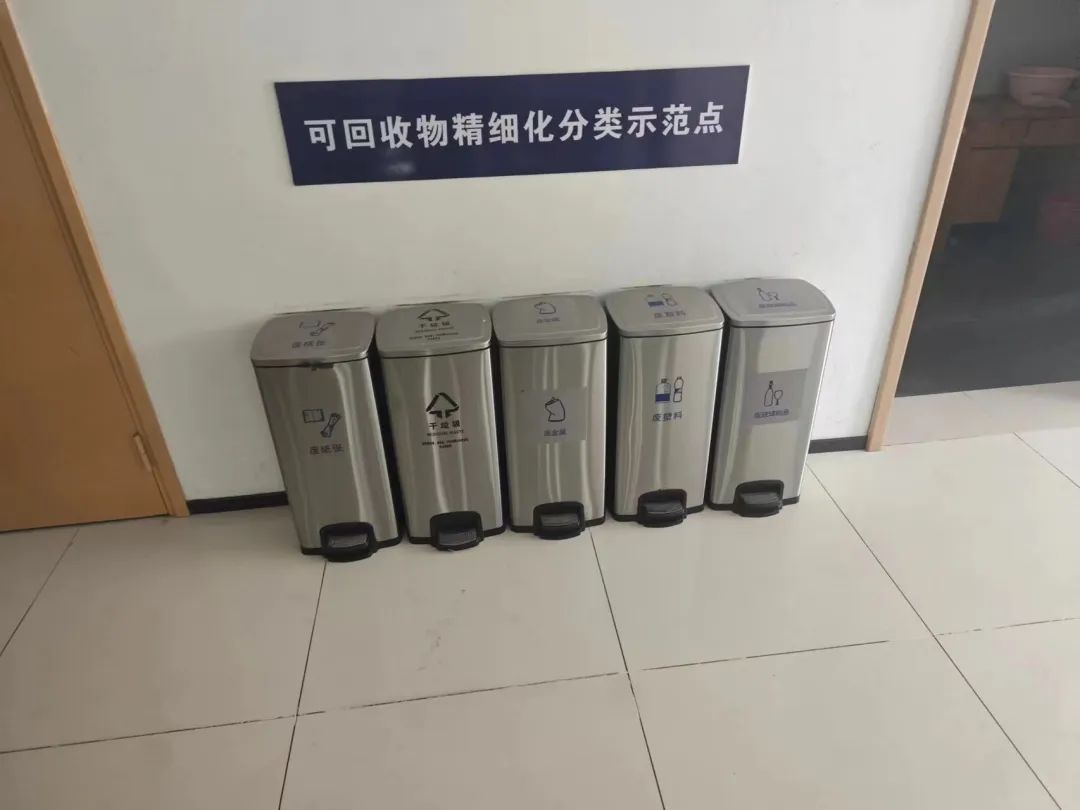 在区绿化市容局的指导下,临汾路街道在辖区内单位办公点全覆盖式设置了可回收物精细化分类废物箱,旨在进一步推进垃圾分类资源利用,促进可回收物精细化分类工作向纵深发展,提高可回收物回收物回收服务质量,提高精细化管理水平。旨在进一步提高辖区精细化分类水平,引导各单位更加积极参与环保行动。实施这一创新措施,有利于实现资源的有效利用,打造可回收物精细化分类示范的新标杆。