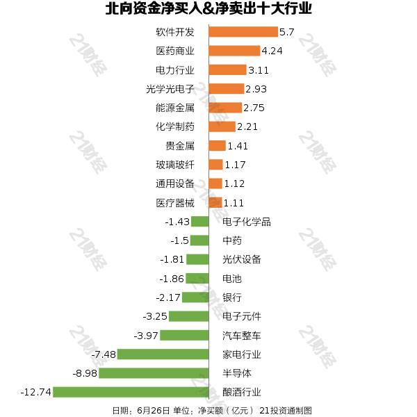 据 21 投资通智能监控,6 月 26 日本,北向资金净卖出 19.82 其中沪股通净卖出亿元 14.06 亿元,深股通净卖出 5.76 亿元。