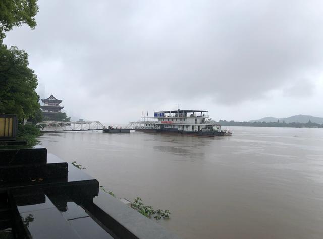 受暴雨影响,橘子洲景区自 6 月 24 日起闭园。6 月 26 一天下午,九派新闻来到湘江参观。此时湘江水位上升,江面比平时宽得多。