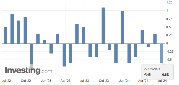 与此同时,美国商务部公布的5月份核心耐用品(扣除飞机非国防资本)订单环比下降0.6%,创下今年最大减幅。分析认为,这一迹象表明,在贷款成本长期居高不下、需求疲软的背景下,公司对投资持谨慎态度。