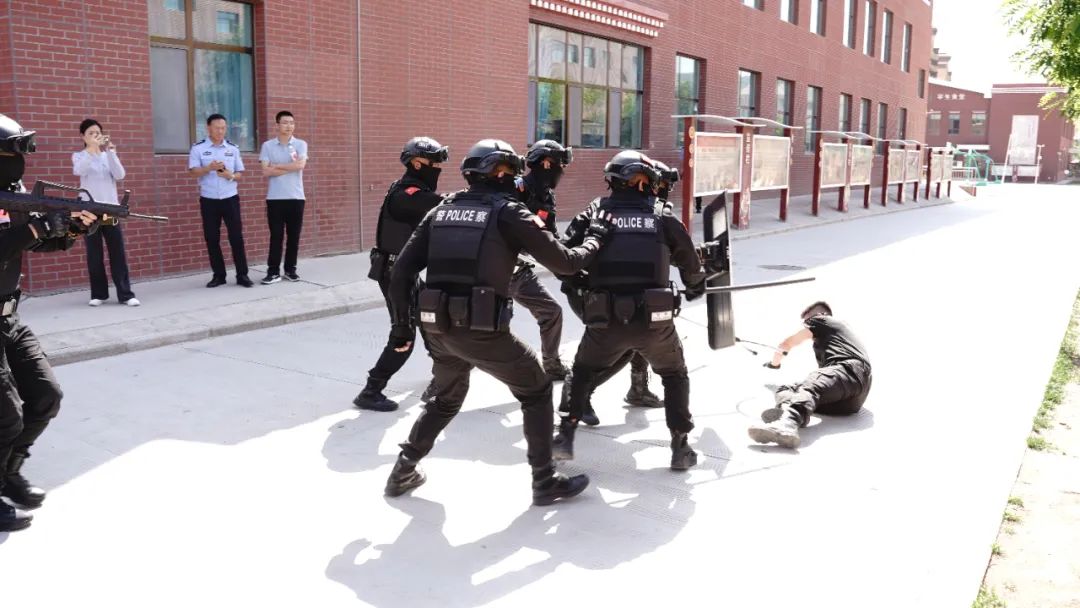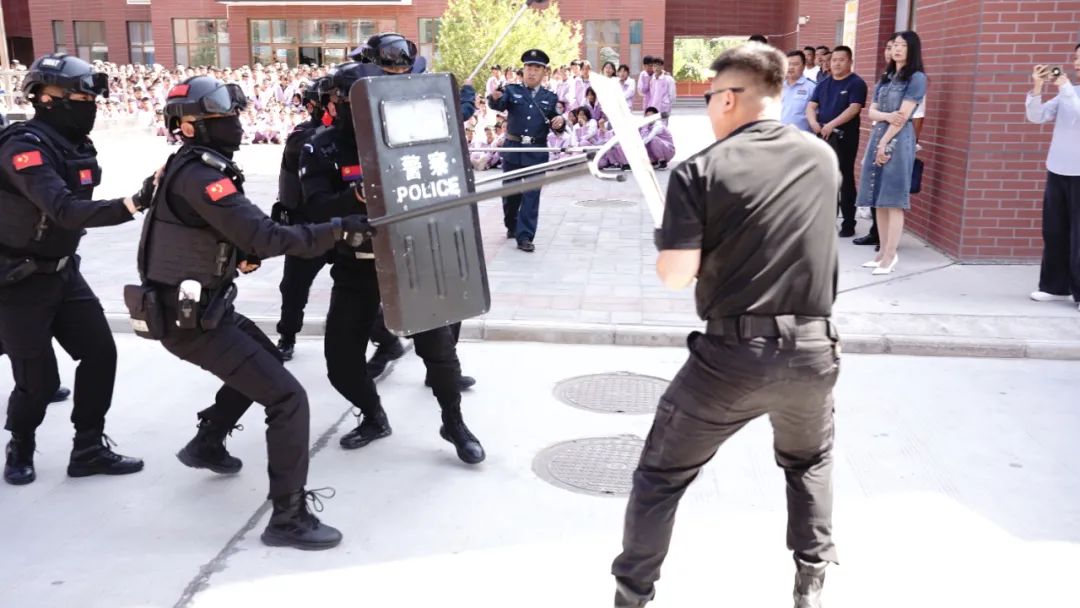 演练前期,乐都区公安局特警大队与学校沟通,制定了本次应急演练的详细方案,详细安排了演练中的场景、场所、人员和演练流程。现场向校园安保人员和教职员工介绍了钢叉、巨盾、警棍等设备的正确使用方法,以及遇到紧急情况时的应急管理方法和技巧,以及如何识别停留在校园周围的“可疑人员”。以及如何以最快的速度制服“匪徒”的具体措施。