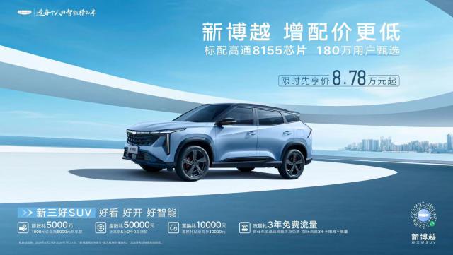 网通社新车 6 月 27 日本,新款吉利博越正式上市,共推出。 4 车辆,指导价格区间为: 9.28 万 -11.88 万元。官方推出限时先享受价格,售价区间为 8.78-11.38 一万元(交定金) 1000 元抵 6000 元)。