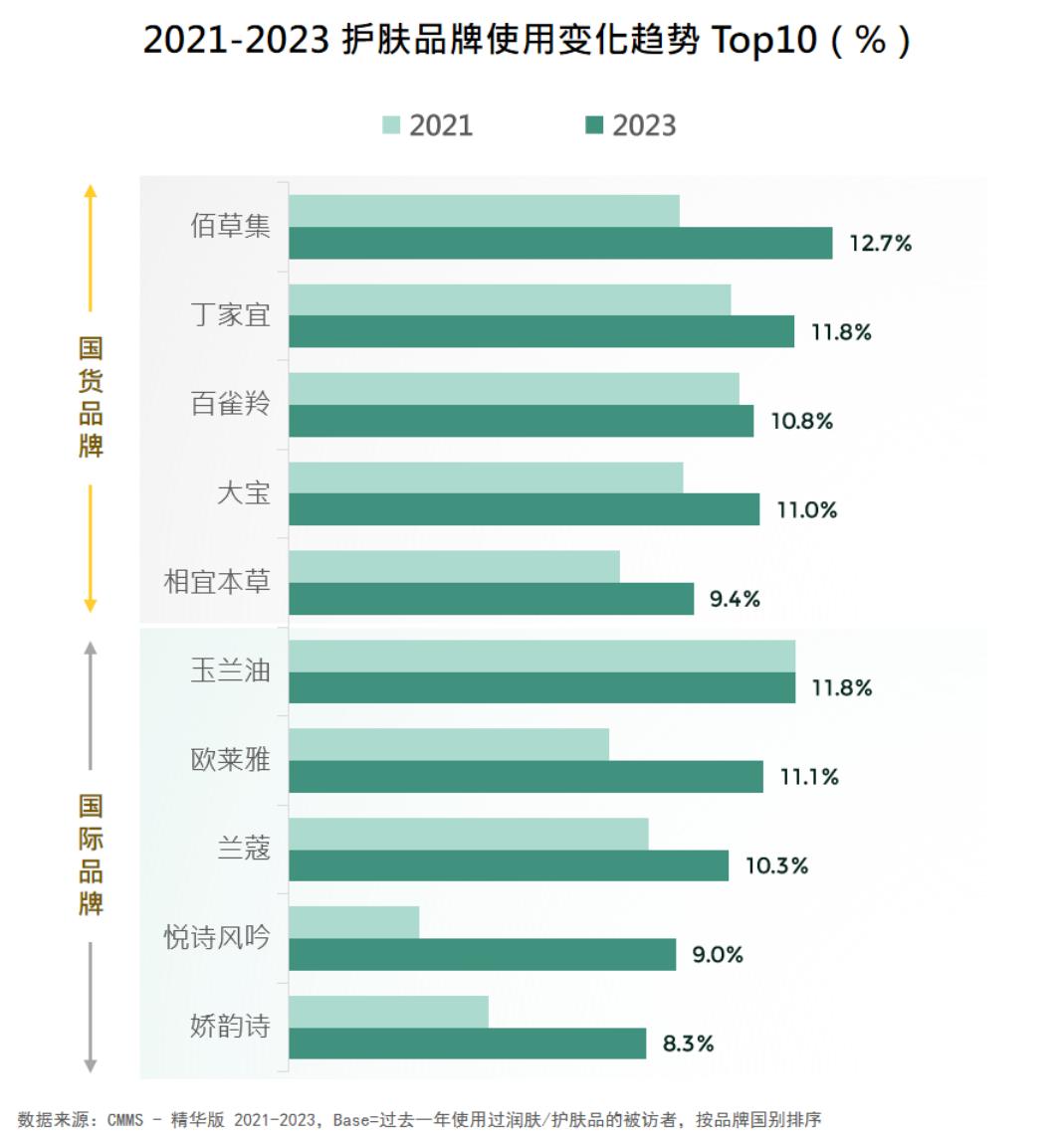- 在品牌方面,头部护肤品牌总体保持增长,国际品牌增长速度相对较快。