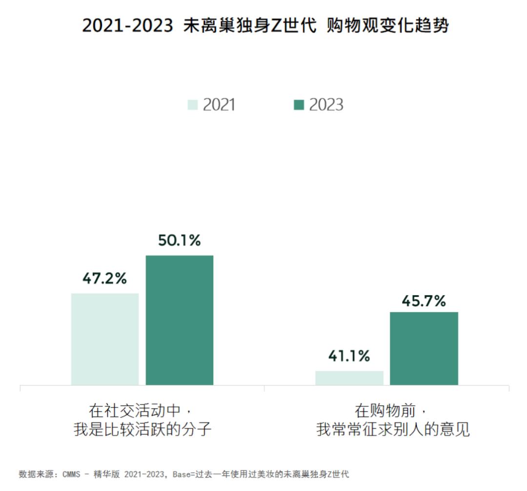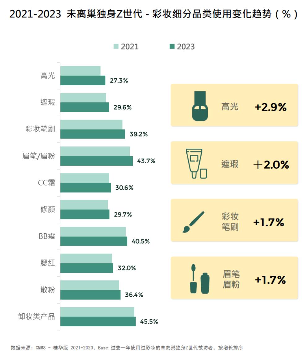- 没有离开巢穴的单身Z世代热衷于追求个性化的妆容表达,妆容精细化的趋势更加明显。
