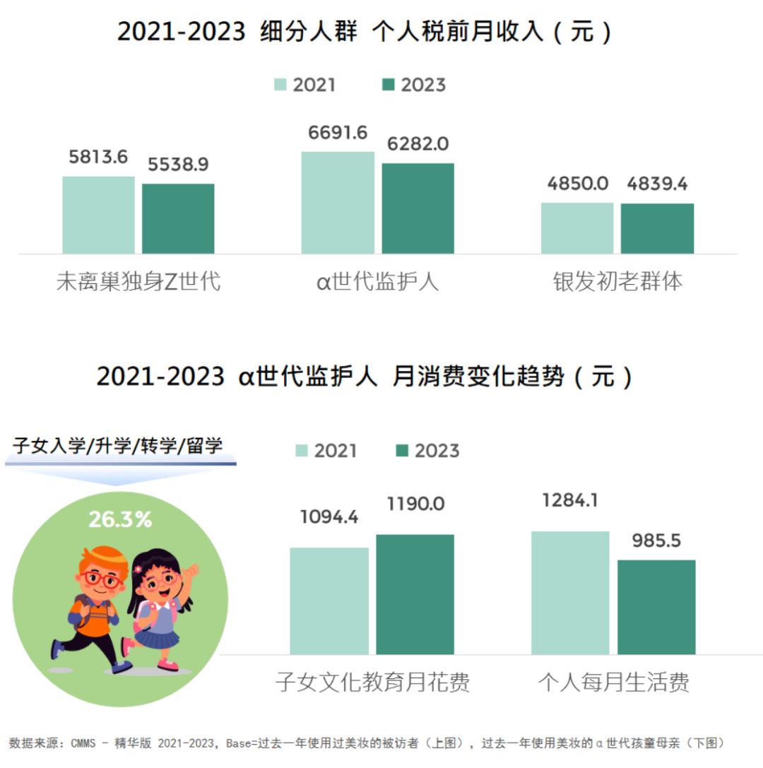 由于孩子升学的需要,α一代又一代的监护人不得不增加开支,这在一定程度上限制了他们的个人美容消费。
