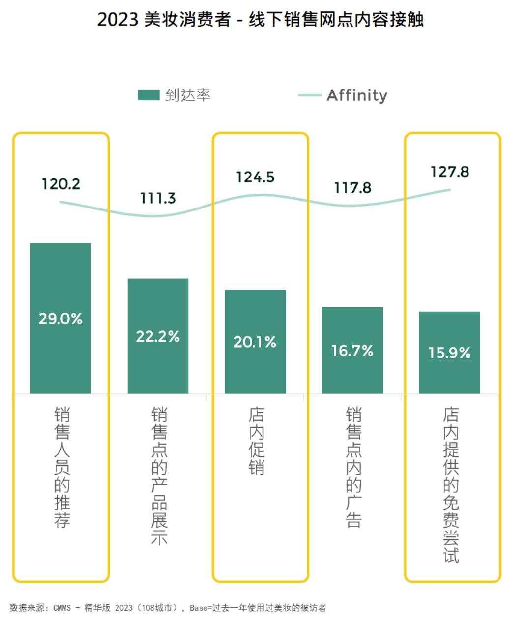 - BA推荐、店内促销、免费试用在实体店购买场景中仍然对美妆客户有很强的沟通效率。