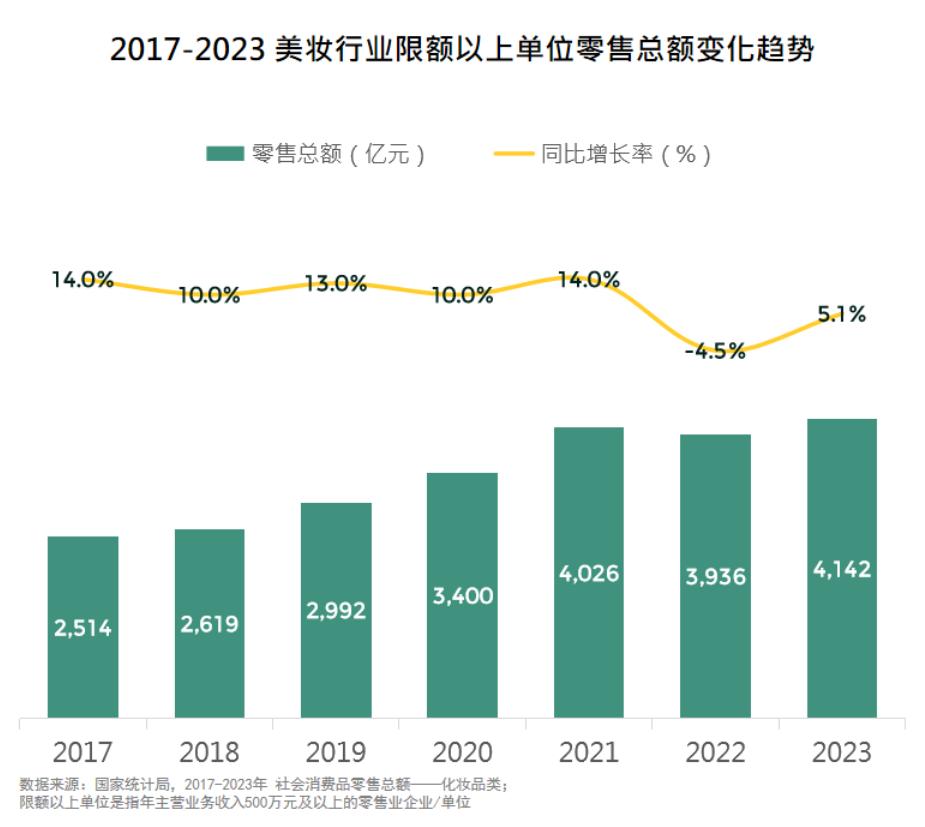 - 在经历了2022年环境原因引起的意外颤抖之后,国内美容行业已经回归增长,零售额再次突破4000亿大关。