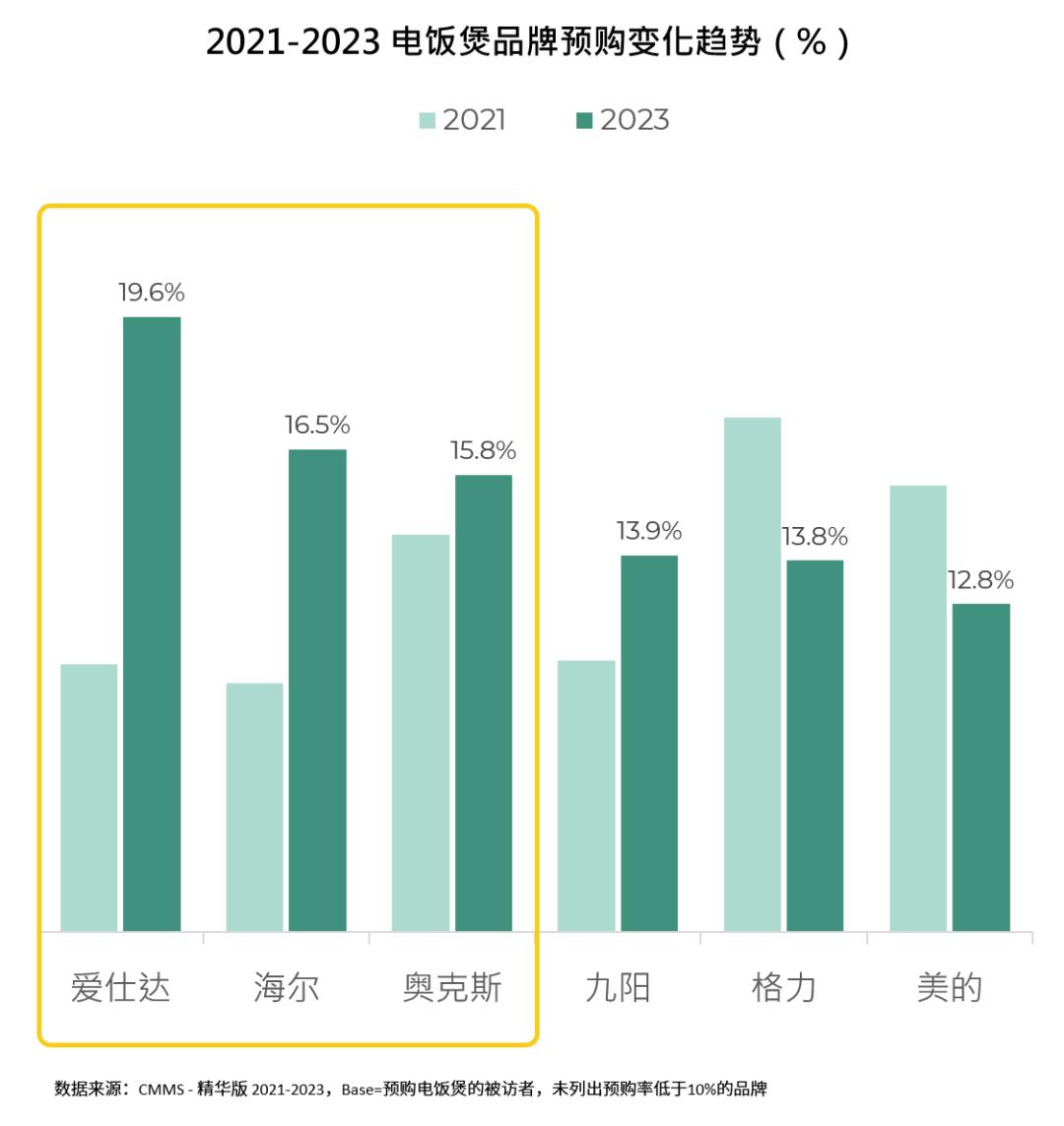 在厨房小家电预订品牌方面,国内品牌在消费者心目中占据主导地位。