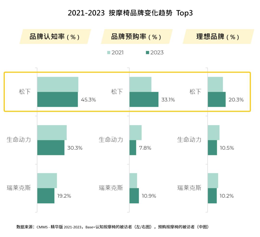 日本品牌作为按摩椅市场领域的行业开拓者,享有成熟的优势。松下作为行业的鼻祖,展现了强大的市场领导力。