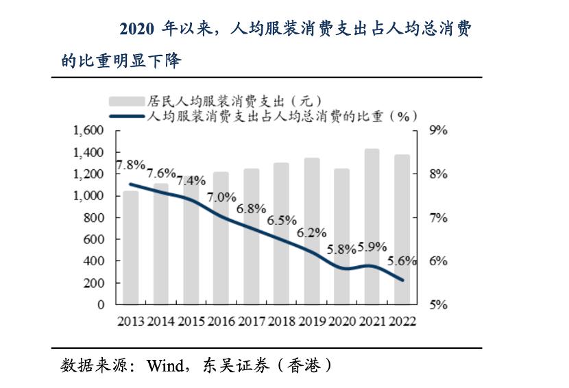 近年来,中国人均服装消费支出占人均总消费的比例明显下降,但总支出稳步上升,体现在消费行为越来越传统,对商品的选择越来越自信,影响品牌力营销手段的概率越来越小。在各大社交媒体中,“平替”越来越多。
