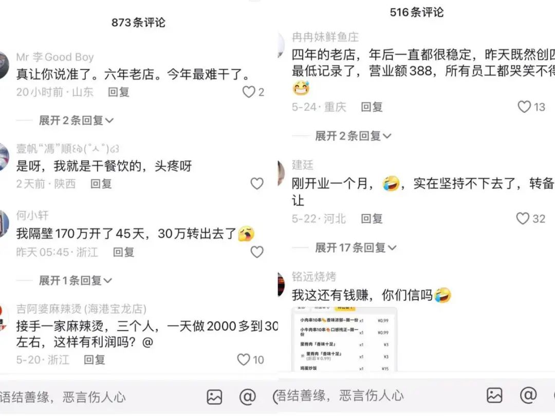 近两年来,一批下岗群体不断涌入餐饮业,摆摊、开小店或小成本加盟连锁品牌。餐饮红利期消散,所以很多小白都是第一次创业,看着不赚钱,只能内卷,或者降价压缩利润换订单,但还是回家了。所以他们情绪悲观,需要通过各种社交媒体发泄情绪。