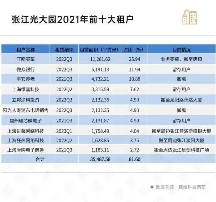去年,工业园区REITS多次出现新闻,年报也不容乐观。建信中关村REIT的租赁率急剧下降——从2022年初的96%一路下降到2023年底的64%;根据张江工业园REIT上市材料,其公布的光大园2021年前十大租户,目前只剩下三个。