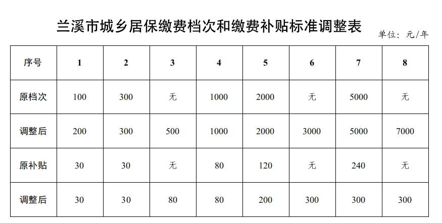 记者昨日从兰溪市人力资源和社会保障局获悉,金华6月20日发布《关于调整城乡居民基本养老保险缴费等级和缴费补贴标准的通知》,自2024年1月1日起实施。