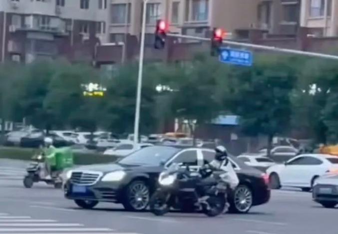 由于变道纠纷,一名男子开车拖摩托车骑手引起骨折!警察报告!