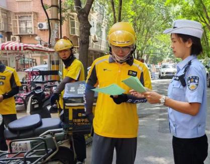 随后,交警从“一盔一带”安全守护行动入手,结合近期涉及电动自行车道路交通事故的经典案例,向外卖小伙伴讲解分析了夏季骑行电动自行车常见交通违法行为的严重后果和危害。要求外卖小伙伴坚决杜绝常见的交通违法行为,如闯红灯、逆行、骑自行车、玩手机、不走非机动车道、随意换车道等。,摒弃交通习惯,养成守法文明骑行的好习惯。另外,交警还要求外卖公司加强对员工的交通安全教育,使外卖小伙伴严格遵守交通安全法规。