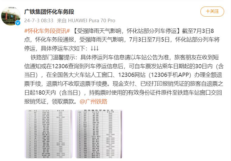 铁路部门温馨提示:具体停车列车信息以车站公告为准。乘客朋友收到短信通知或在12306查到停车信息后,可在车票发站日期起30日内(含当日)在全国各大火车站人工窗口、12306网站(12306手机APP)办理全额退款手续,退款不收取退款手续费。自退款之日起180天内(含当日),结算现金并打印报销凭证的乘客将持购票时使用的有效身份证原件到铁路车站窗口支付报销凭证,领取票款。