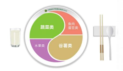 1. 以植物性食物为主,动物性食物适量的饮食模式。食物多样,三大营养素供能比例适中。可以参考“中国居民合理饮食餐具”,帮助搭配不同类型的食物。通过吃动物平衡来保持健康的体重。