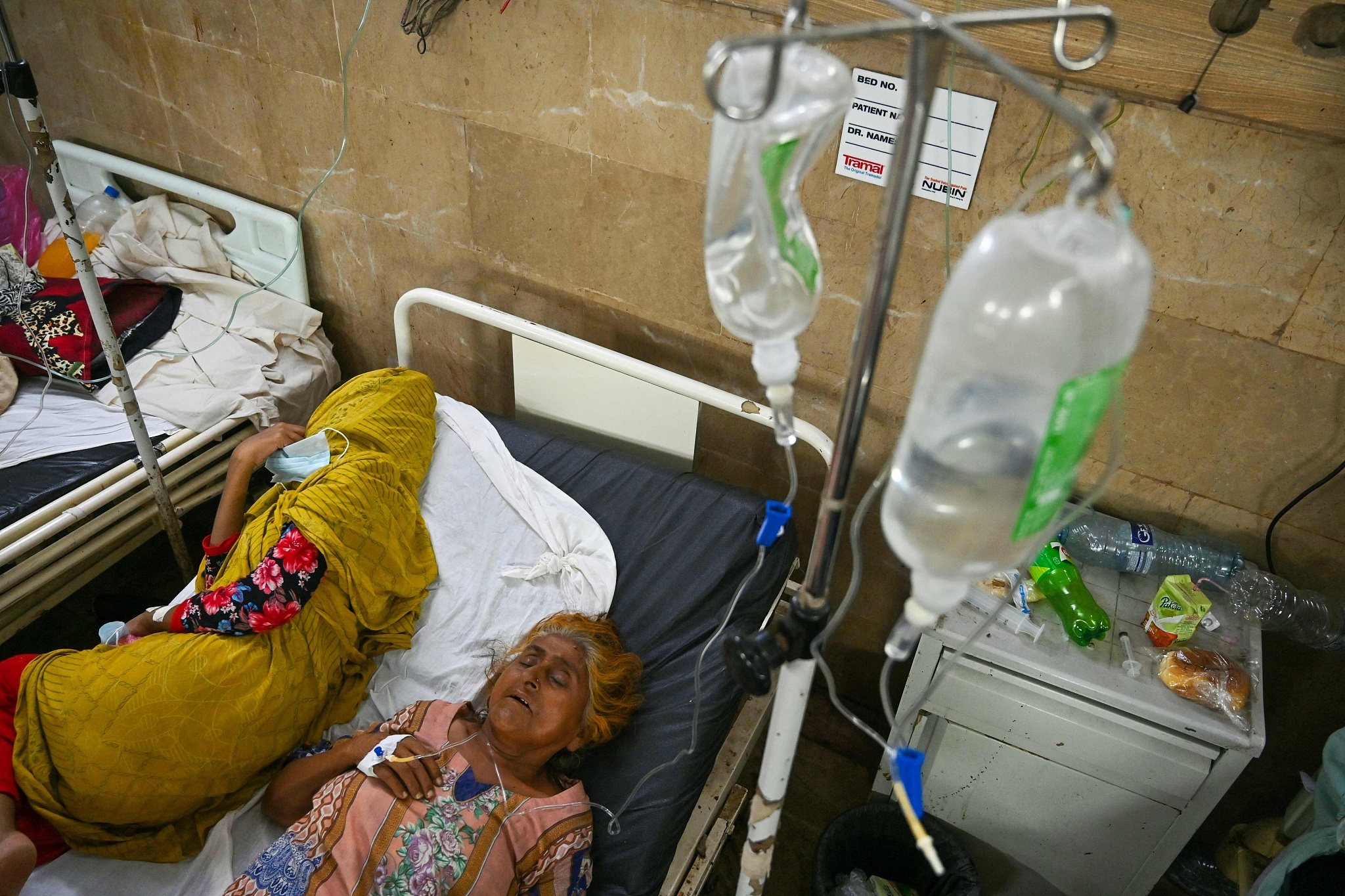 巴基斯坦卡拉奇,当地时间2024年6月27日,高温持续,中暑患者在医院接受治疗。