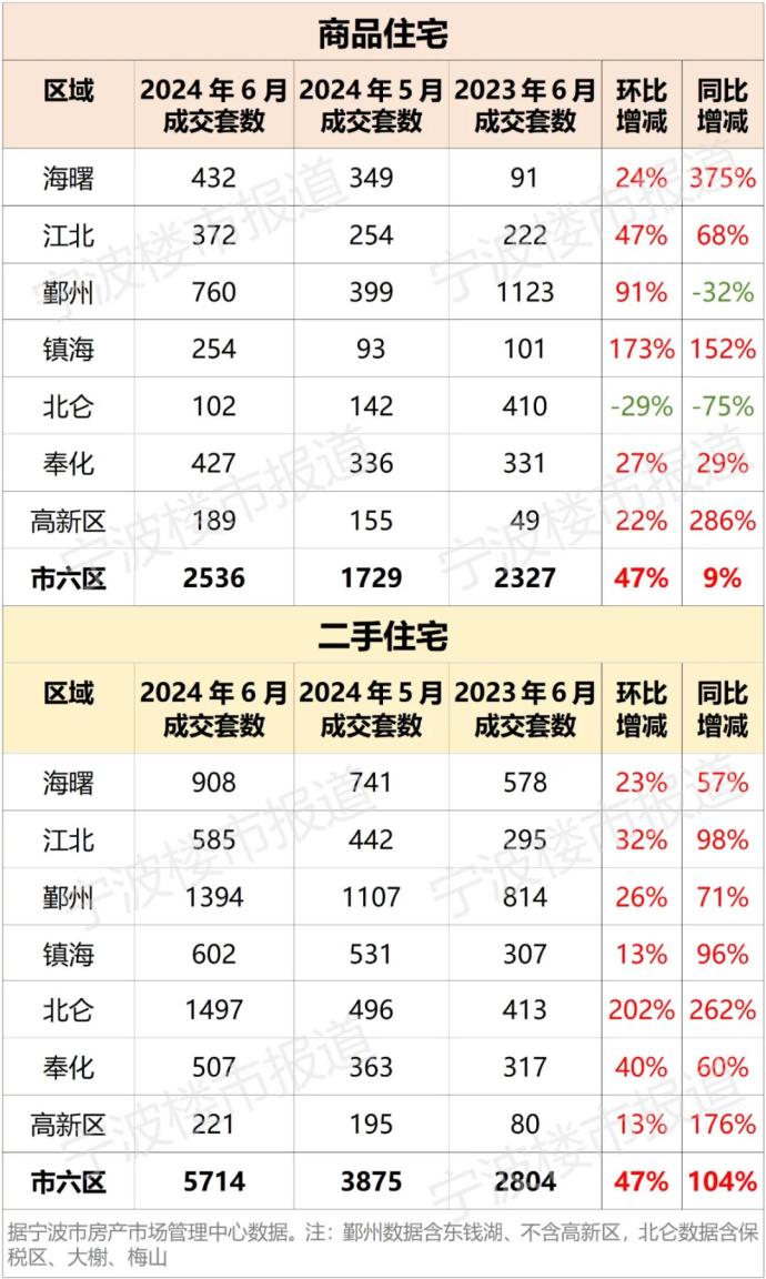 原标题:“六月份,宁波城区新房、二手房交易大幅上涨”