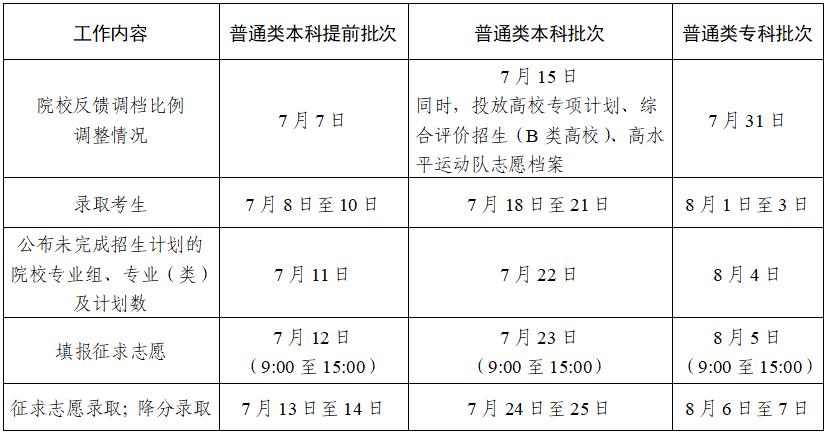 强基计划、军事院校招收飞行学生、综合评价招生(A类院校)等类型的录取,安排在本科提前分批备案前完成。高校专项计划和综合评价招生(B类院校)、高水平运动队等类型的录取,安排在本科提前批次录取后,本科批号投档前完成。