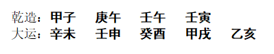 接下来的两步是壬申酉,申酉是空的。虽然不能生助子水,但也不限制子水。如果子水不受控制,可以制造午火。因此,他的父亲不会死于壬申酉,而只会死于第一步。其次,根据正财中午火在局中的凶猛程度,不可能切断父亲在第二步和第三步中的死亡。辛未运戊寅年,寅木为实忌神到,克伤未土不绊午火,寅木又生助午火,泄年支子水,子水受伤不制午火,午火不制大凶,今年父亲去世。
