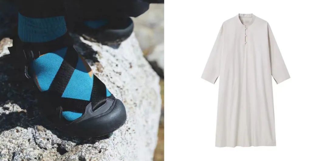 蓝色船袜 黑KEEN追溪鞋,搭配MUJI连衣裙,都市寺院风也可以轻松把握。