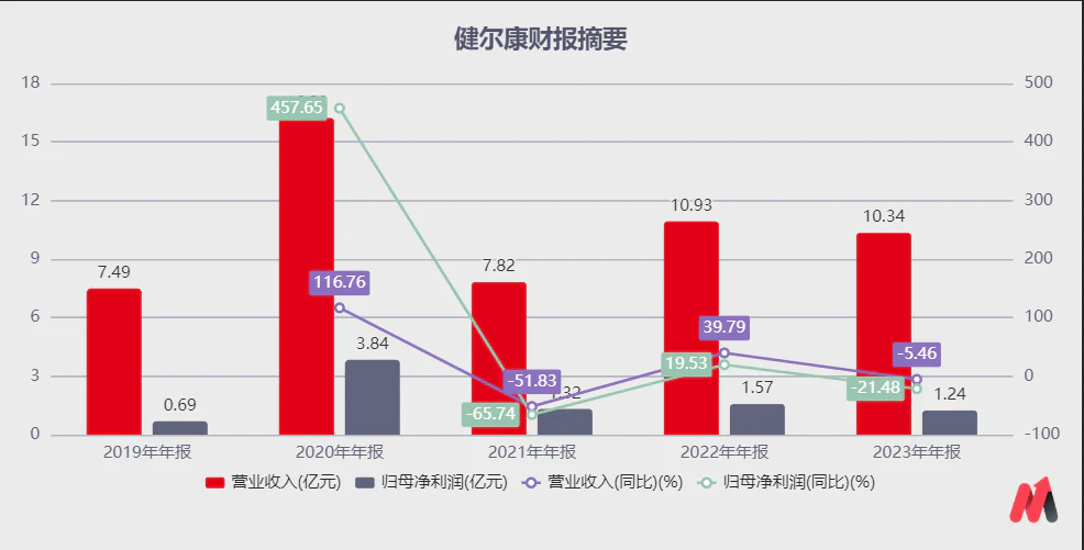 低值耗材产品是医疗活动中常用的材料。这类公司的收入在医疗环境稳定的情况下很难实现快速增长。疫情发生的第一年,口罩、纱布等医疗用品短缺,健尔康产品也大幅增长。2020年,公司收入猛增116.76%至16.23亿元,归母净利润大幅增长457.65%至3.84亿元。