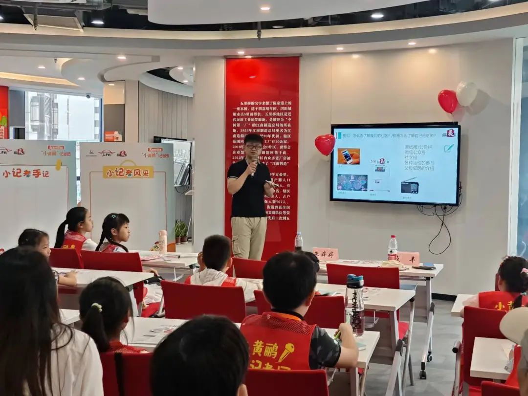 为进一步培养孩子的家国情怀,践行社会主义核心价值观,丰富青少年社区实践,培养新时代文明新风格,今年暑假,五里桥街道联合晨报社区媒体开展了“小黄鹂”记者团培训活动,为辖区内儿童建立了媒体、学校、社会、家庭四位一体的新闻实践平台。“小黄鹂”一方面意味着希望孩子们在黄浦区和五里桥街道一起传递快乐和收获,携手成长;另一方面,我们也希望他们能像活泼可爱的黄鹂鸟一样,用敏锐的洞察力和细腻的笔触捕捉到社区的每一个精彩瞬间,传递出愉悦的时代声音。