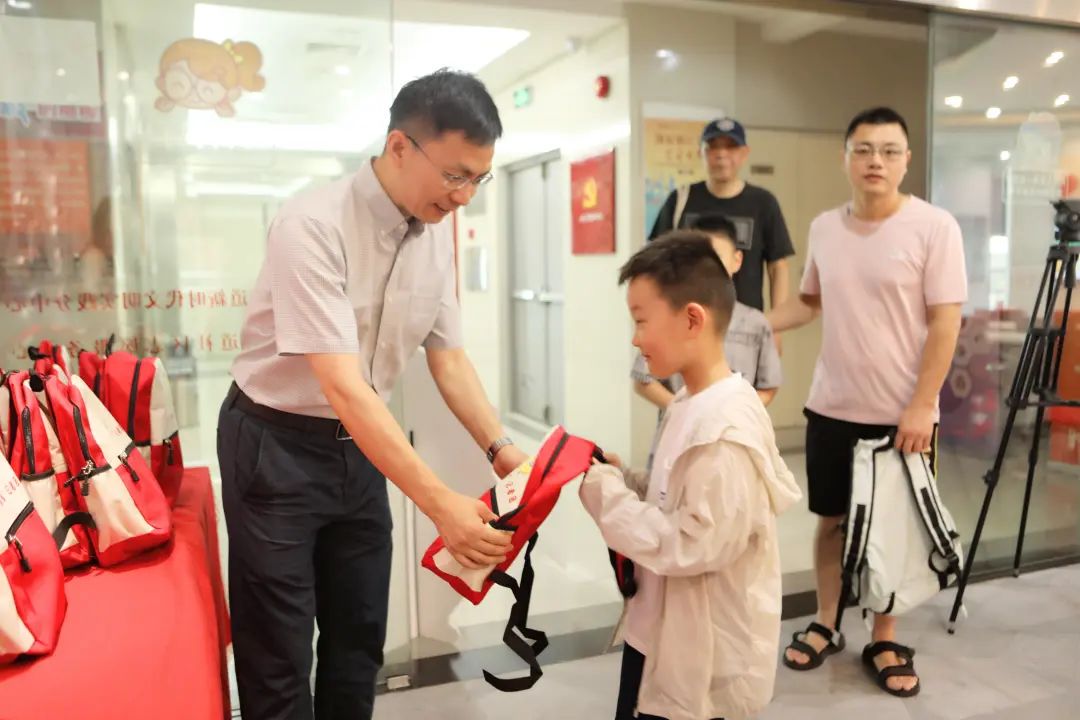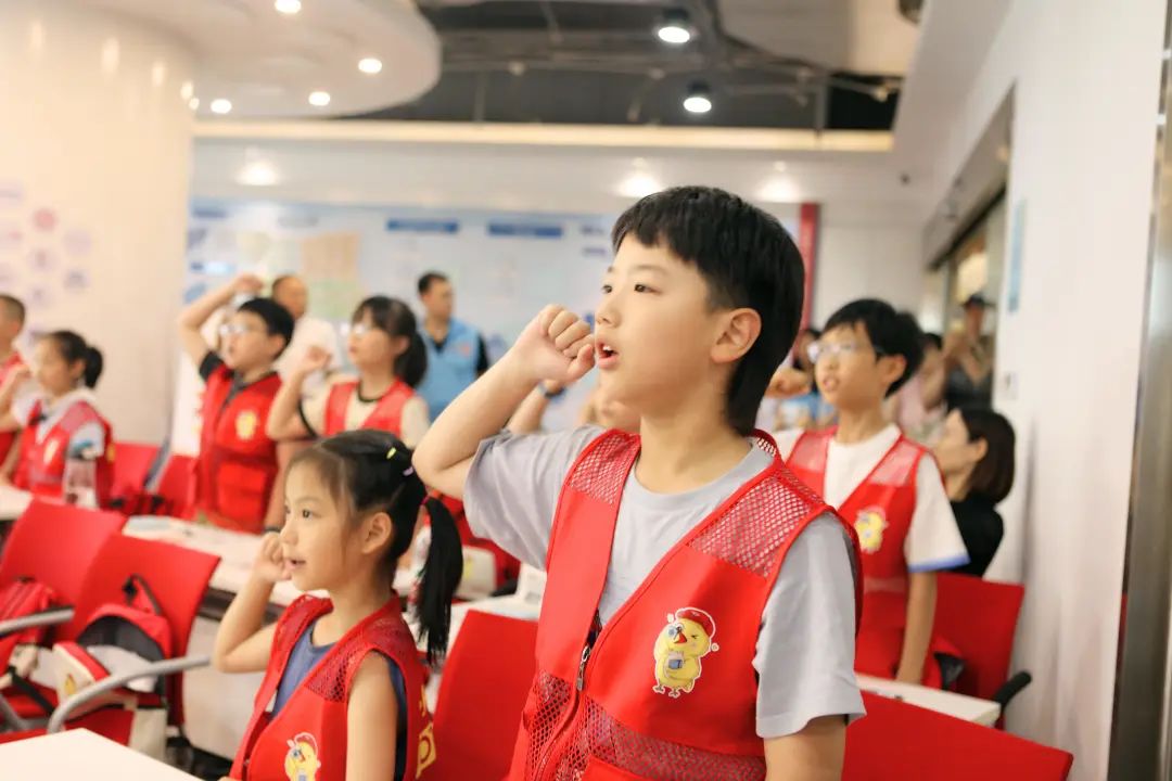 上课当天上午,小记者陆续到达现场。五里桥街道工作人员和学生志愿者在教室门口向小记者赠送了背心、书包、帽子和采访本等专属设备。