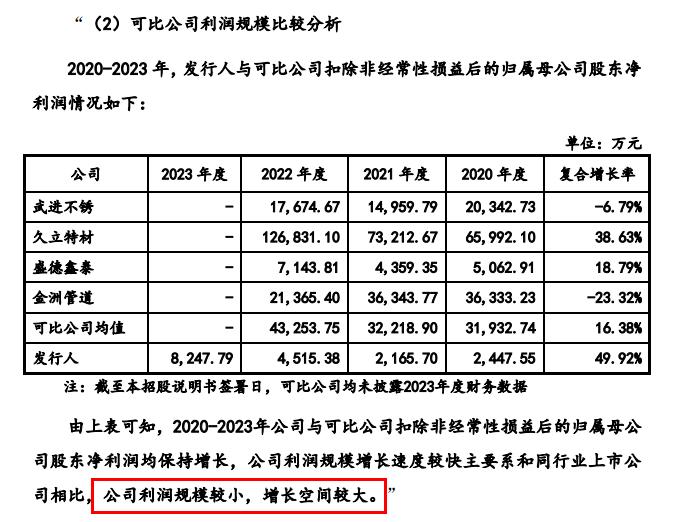 北方证券交易所要求中达新材料分析业绩提升是否与公司趋势一致。2020年至2022年扣除后,公司净利润复合增长率为49.92%,与扣除后公司净利润复合增长率相比,平均增长率为16.38%。对此,公司回复称,与同行业上市公司相比,公司盈利规模较小,增长空间较大。