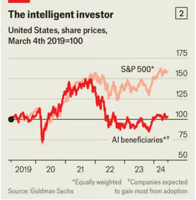 周二著名杂志《经济学人》的文章更直接地揭示了这一尴尬现象:到目前为止,AI技术基本上没有产生任何经济效益。