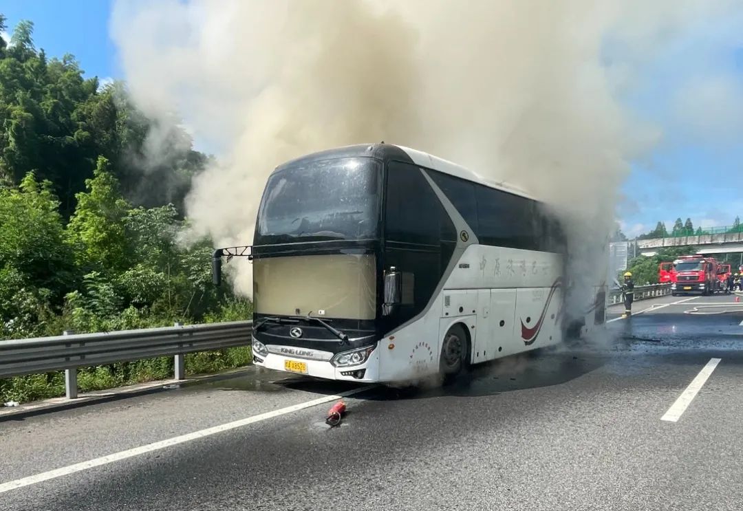 原题:“54座大巴高速起火!司机40秒解决危机!”