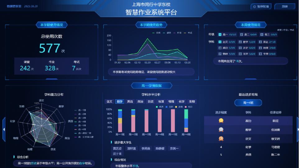 该校的《5G 智慧教育下的学生学习生活全场景创新应用获得上海市随申码创新大赛三等奖、闵行区域教育2023年数字化转型典型场景应用优秀案例荣誉。“指向学生成长:5G 智能教育的学生学历追溯项目研究也获得了全国第六届“绽放杯”5G 智能化教育应用一等奖。