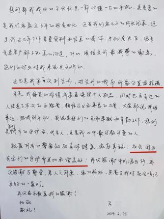 这是张先生开头的手写感谢信。张先生在信中讲述了失去手机的焦虑和找到手机后的喜悦,表达了对警察的感谢和对兰州的热爱。一封“用心”的感谢信送给了“用心”的警察。