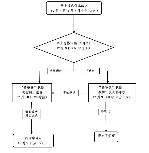 未通过网上资格审查的人员(7月9日8日:30后注册网站仍显示为“待审核”状态)。如果觉得自己符合报考条件,可以根据各考点公布的要求,持有相关确认(证件)材料进行二次资格审查。二次审批截止时间为7月10日(详见各考点公告)。