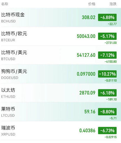 在这些人中,BTC一度跌落54000美元/枚,天下跌7%;目前,以太坊下跌超过6%;而且瑞波币和狗币这类较小的货币损失较大,有的跌幅超过10%。