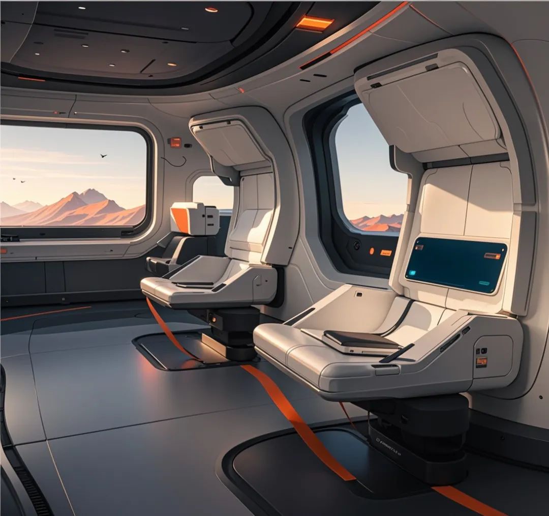座椅的头枕部分集成了虚拟现实和增强现实技术,以满足乘客的娱乐和工作需求。当乘客想休息时,头枕会播放舒缓的音乐,引导乘客通过脑波同步技术进入深度放松的睡眠状态。当乘客需要工作或学习时,头枕会显示一个大的虚拟屏幕,提供一个高效的工作环境,仿佛有一个私人移动办公室。