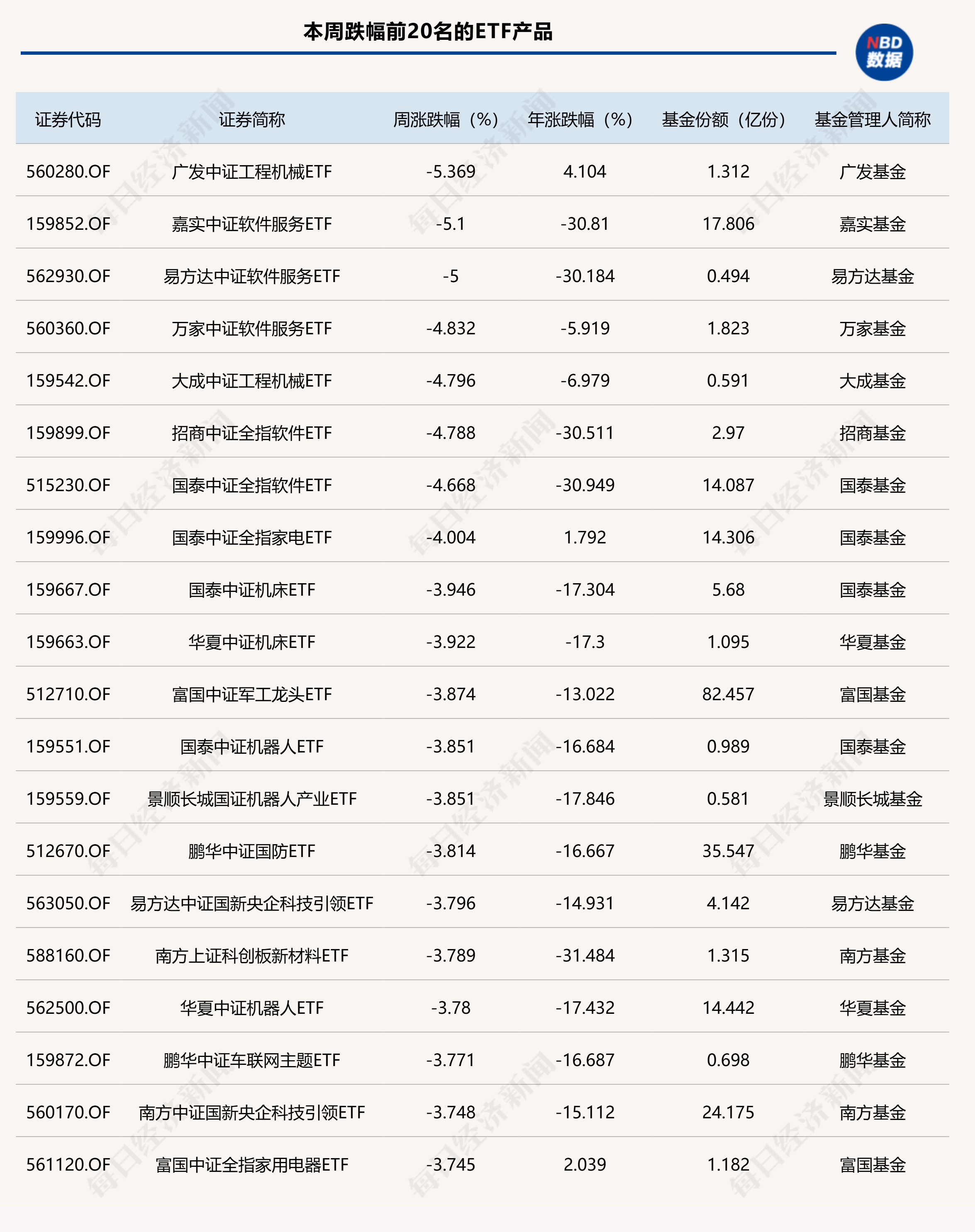 再次看下跌名单,本周排在下跌名单前面的是广发工程机械ETF(560280),每周下跌5.37%。另外一款刚刚上市满月的大德工程机械ETF(159542),每周下跌4.8%。