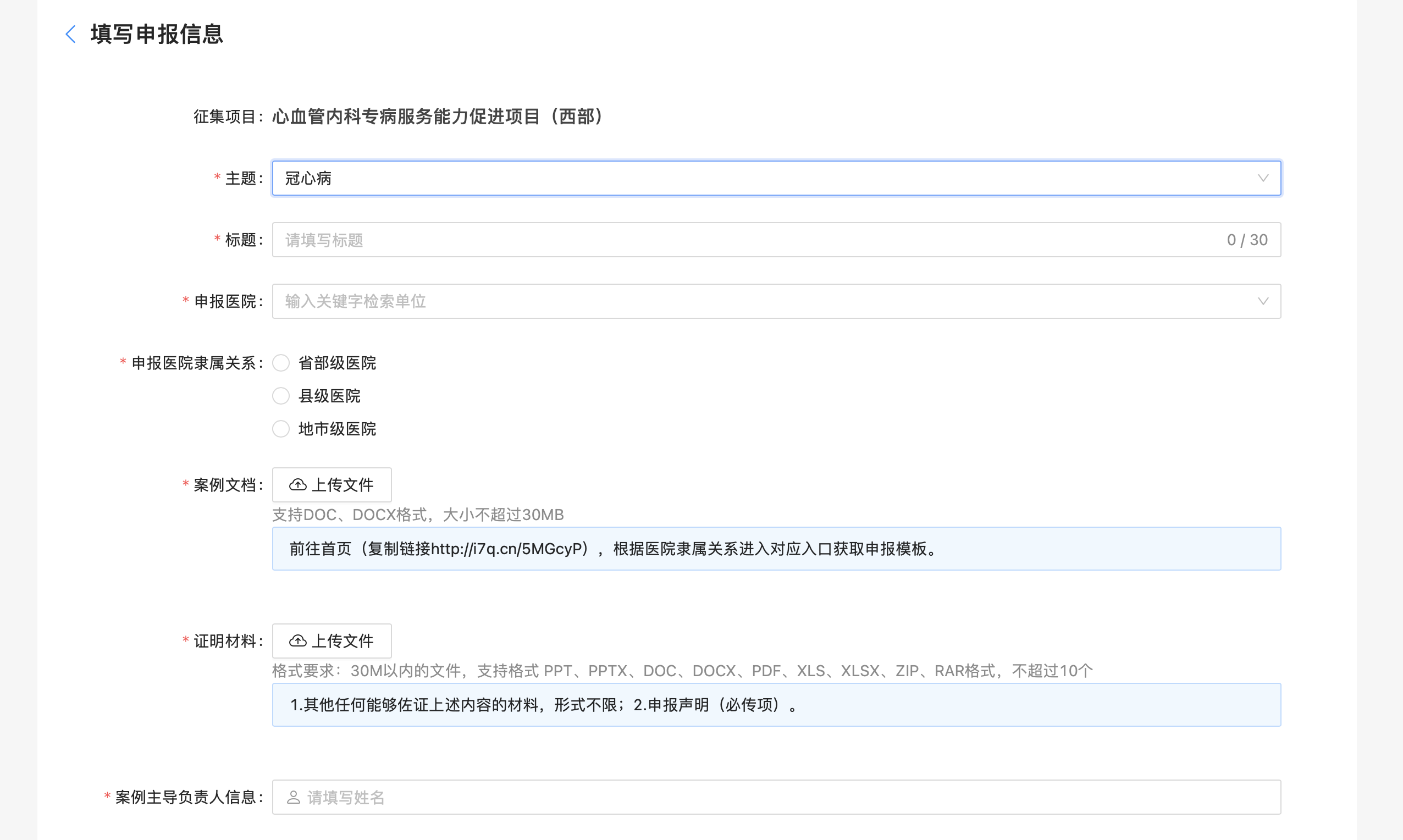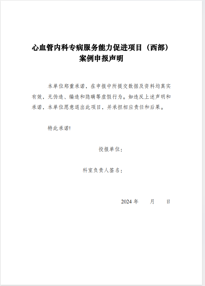 第四步:打印《心血管内科疾病服务能力促进项目-案例申报声明》,由部门负责人签字,扫描后上传至【申请案例-证明文件】