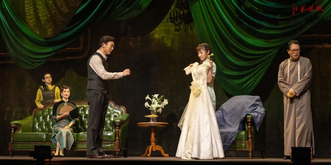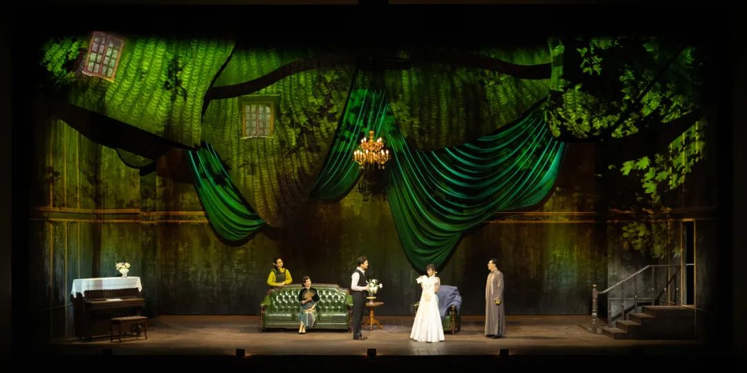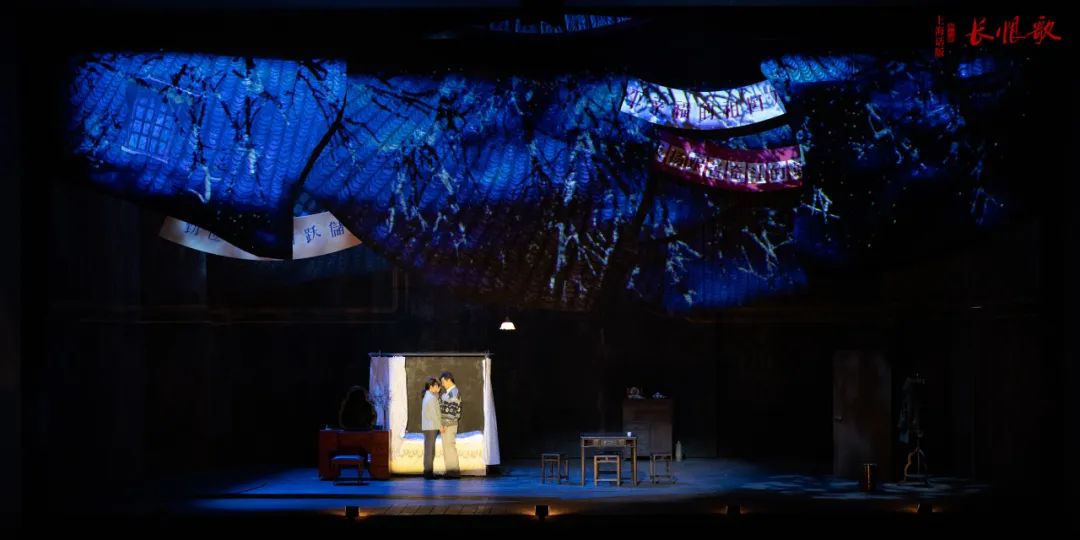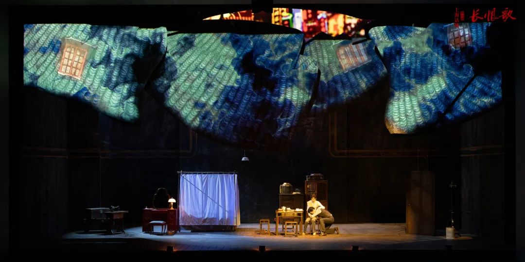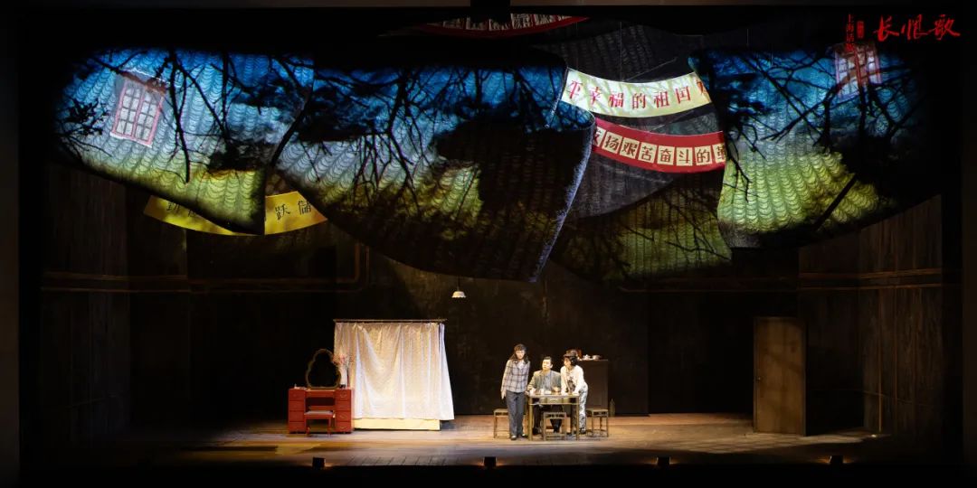 这一版《长恨歌》的美丽舞台给观众留下了深刻的印象。随着剧情和舞台场景的变化,观众穿梭在老上海的三个时代,仿佛回到了旧时代,感受到了一个小人物在时代洪流下的不幸。这次舞美设计来源于上海人徐肖环的手,他从小就在石库门里长大。提到这次创作的灵感来源,他说:“小说《长恨歌》给我留下了很大的印象,不仅仅是因为各种人物的命运跌宕起伏,更是因为时代的变迁和时代在我个人身上留下的印记。小说中有一大段景物描写,如上海巷子、虎窗、屋瓦、鸽子、麻雀等。除这些看不见的部分外,还有看不见的谣言和沉默,凝聚和消失,希望和绝望。这不仅仅是背景信息,更是诗意的暗示和隐喻,是我这次创作的重要源泉和基石。”