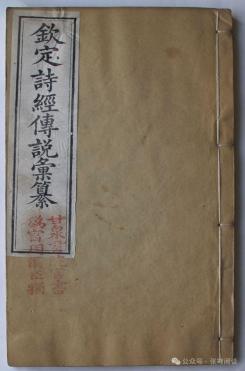 甘州区图书馆收藏《钦定诗经传说汇编》(二十一卷、第二卷、第二卷)、(清)王鸿绪等。,总共18卷25卷,是清同治十年(1871)崇文书局的刻本。这本书的开本(高)×宽):30.0×17.6cm,白口,单黑鱼尾,周围双边。内封下方的朱文长方印“汉口东壁垣选办各直省官书局,家藏所有好书发兑”。有戴临书雍正五年《御制序》、王鸿绪等30位修改官名和目录。