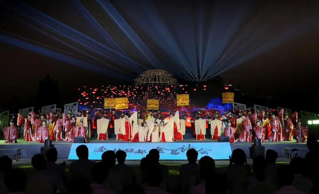 6月29日晚,“追梦镍都金昌诗会”在金昌市紫金苑景区举行。全场诗会分为三章:“千年约会”、“龙头之光”和“金昌约会”。金昌是一座浪漫的城市,具有独特的历史文化元素,以诗歌朗诵、情景演绎、歌舞表演等方式深刻诠释了其文化底蕴和时代风采。,充分展现了金昌文化旅游发展的新气象。