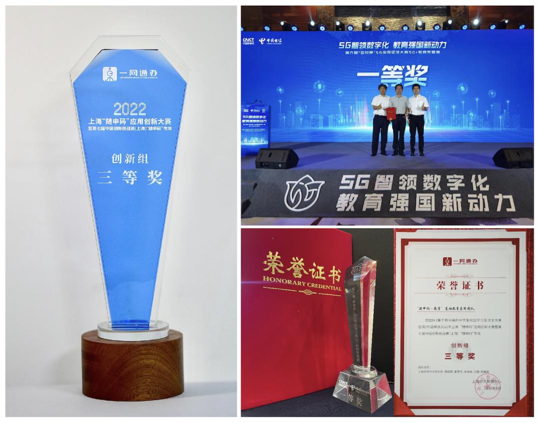 该校的《5G 智慧教育下的学生学习生活全场景创新应用获得上海市随申码创新大赛三等奖、闵行区域教育2023年数字化转型典型场景应用优秀案例荣誉。“指向学生成长:5G 智能教育的学生学历追溯项目研究也获得了全国第六届“绽放杯”5G 智能化教育应用一等奖。