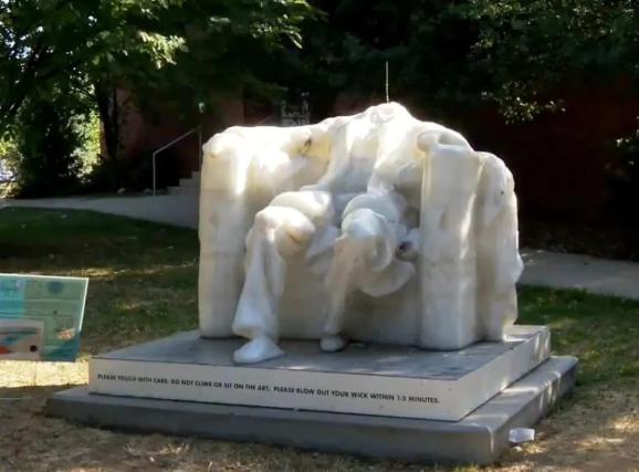 美国前总统林肯的蜡像最近被高温热搜。因为美国华盛顿的温度太高,前总统林肯坐的蜡像被“斩首”,头和身体分开,腿融化成一团。