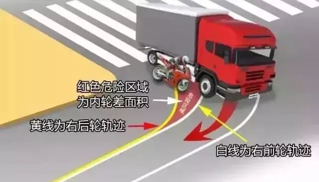 A、B、c区域为半盲点,半盲点的危险范围取决于大型卡车的大小。车身下方会进入半盲点。越靠近,司机越不容易发现。